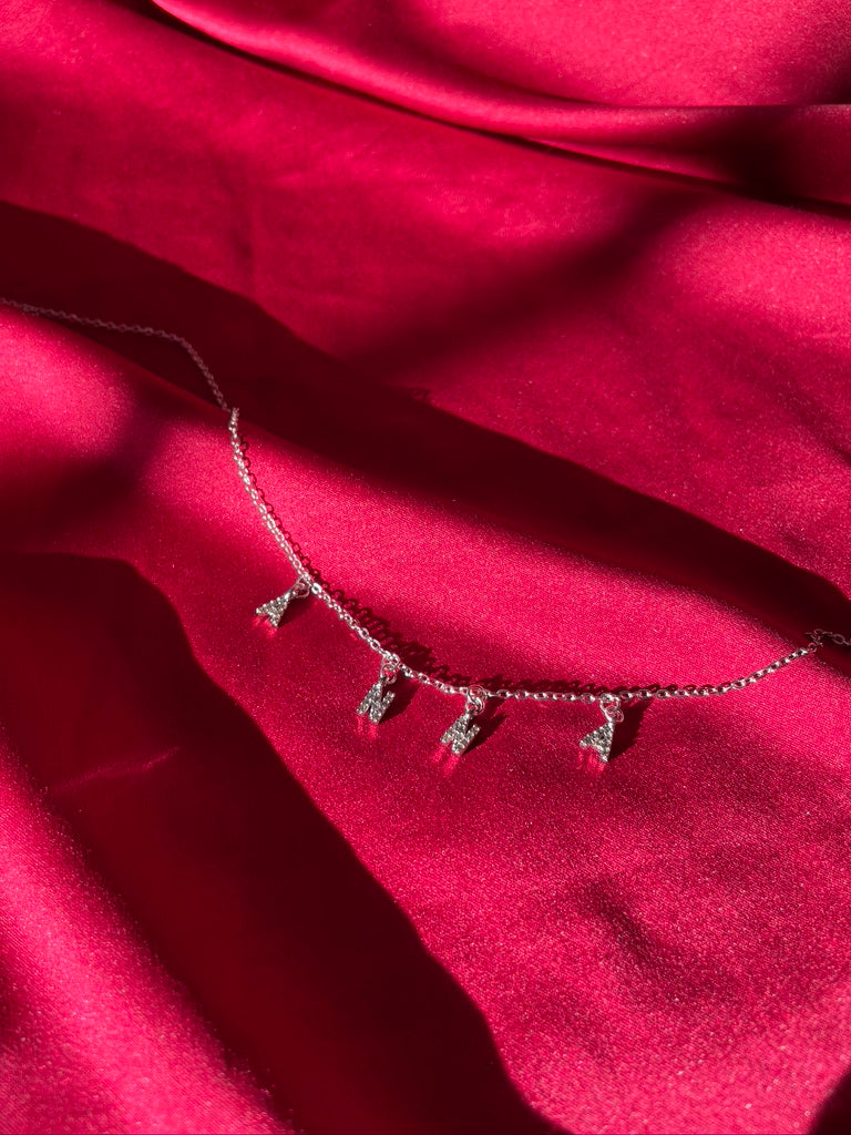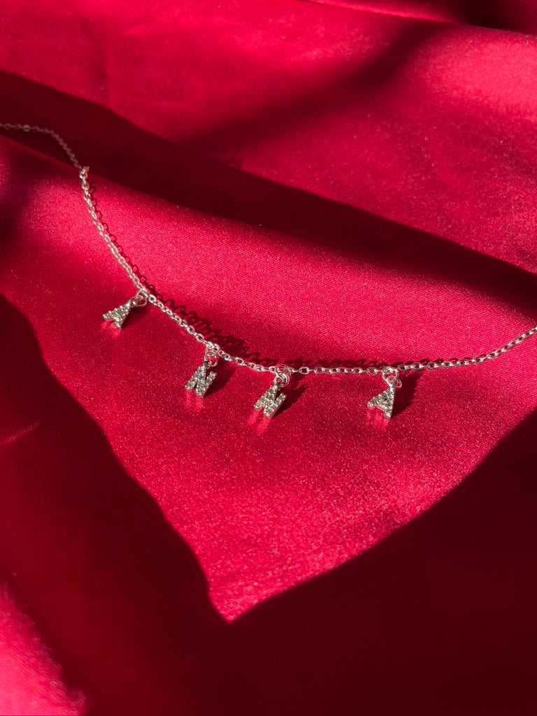 Silver plated chain with a personalised lettering of your choice! The micro pave initial charms are also silver plated!