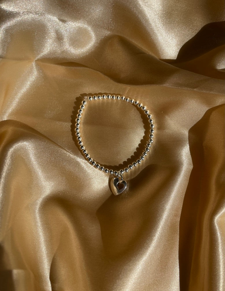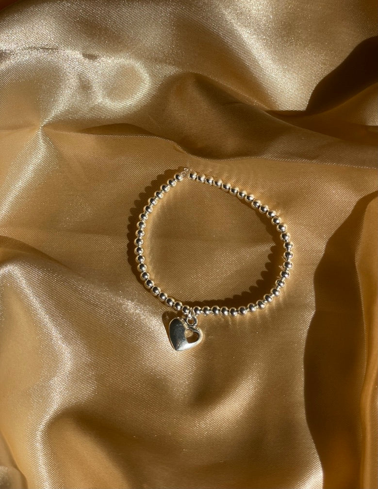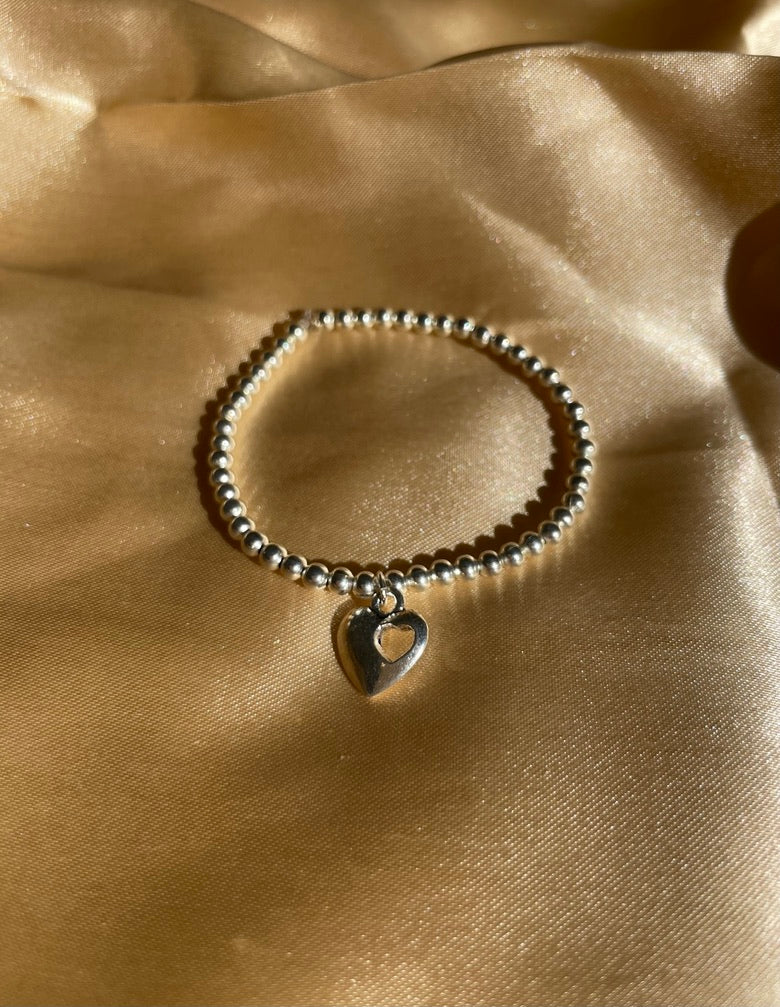A stunning silver beaded bracelet with heart charm