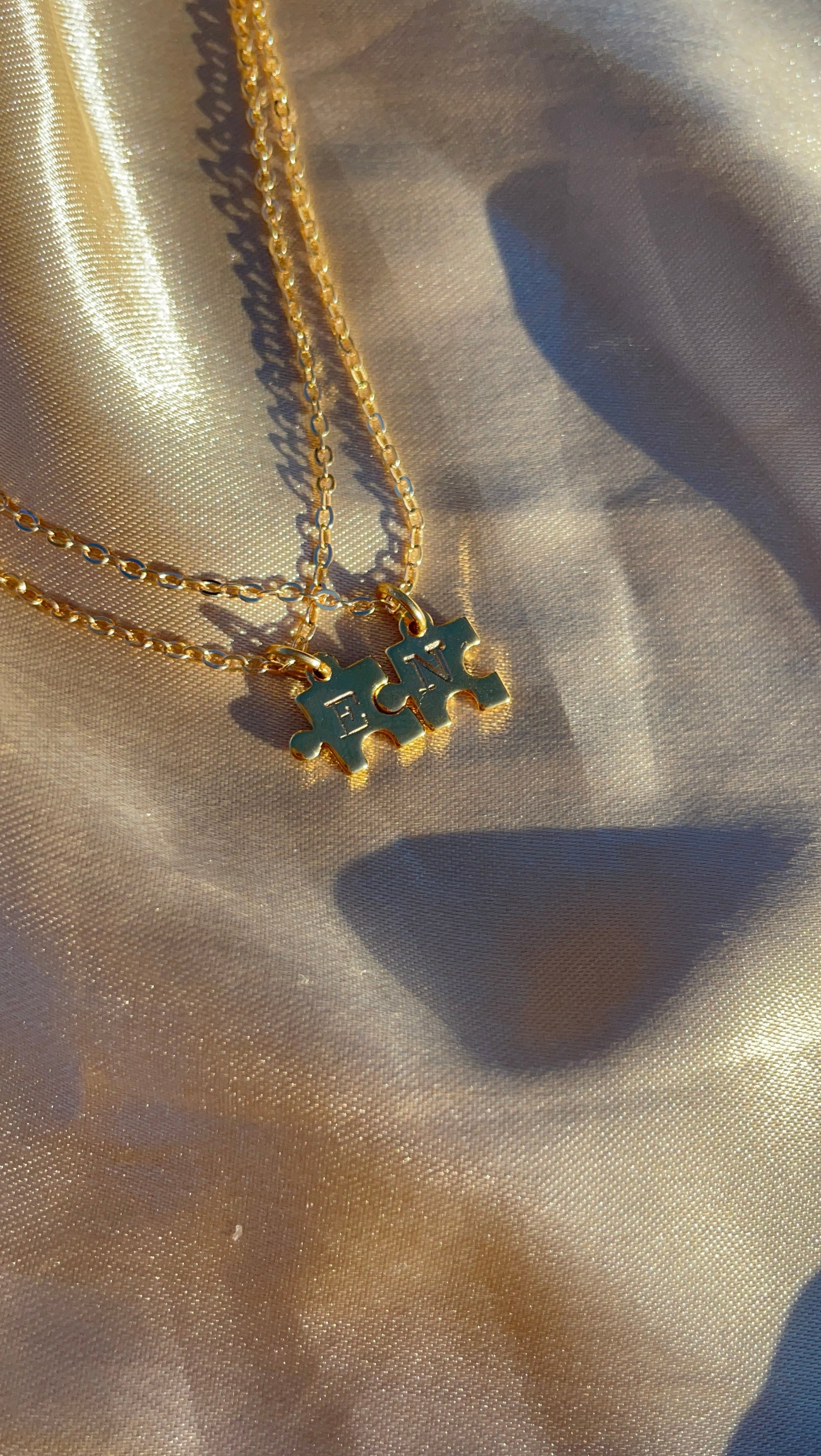 A beautiful 24kt gold plated puzzle piece charm on a gold plated chain.