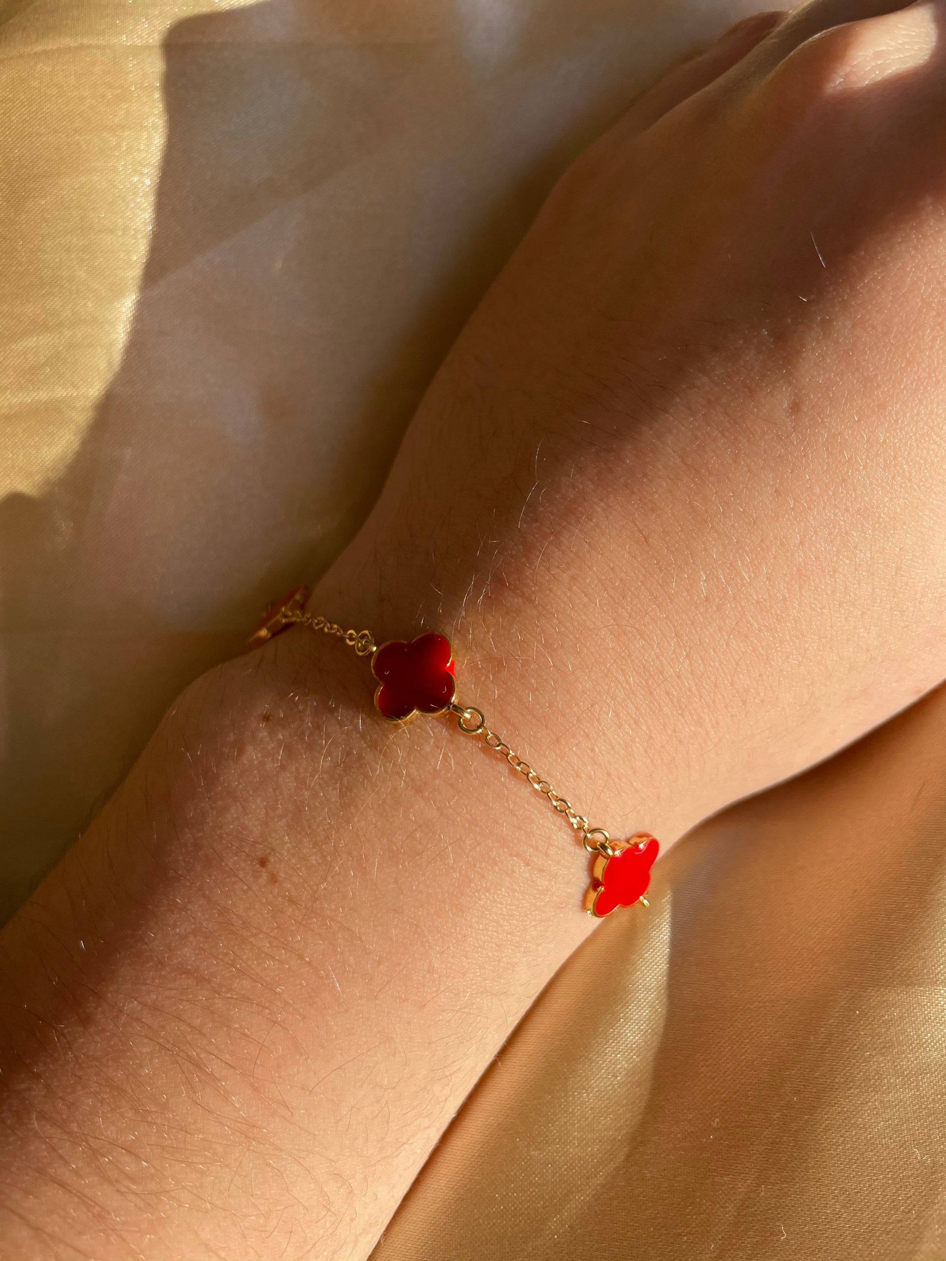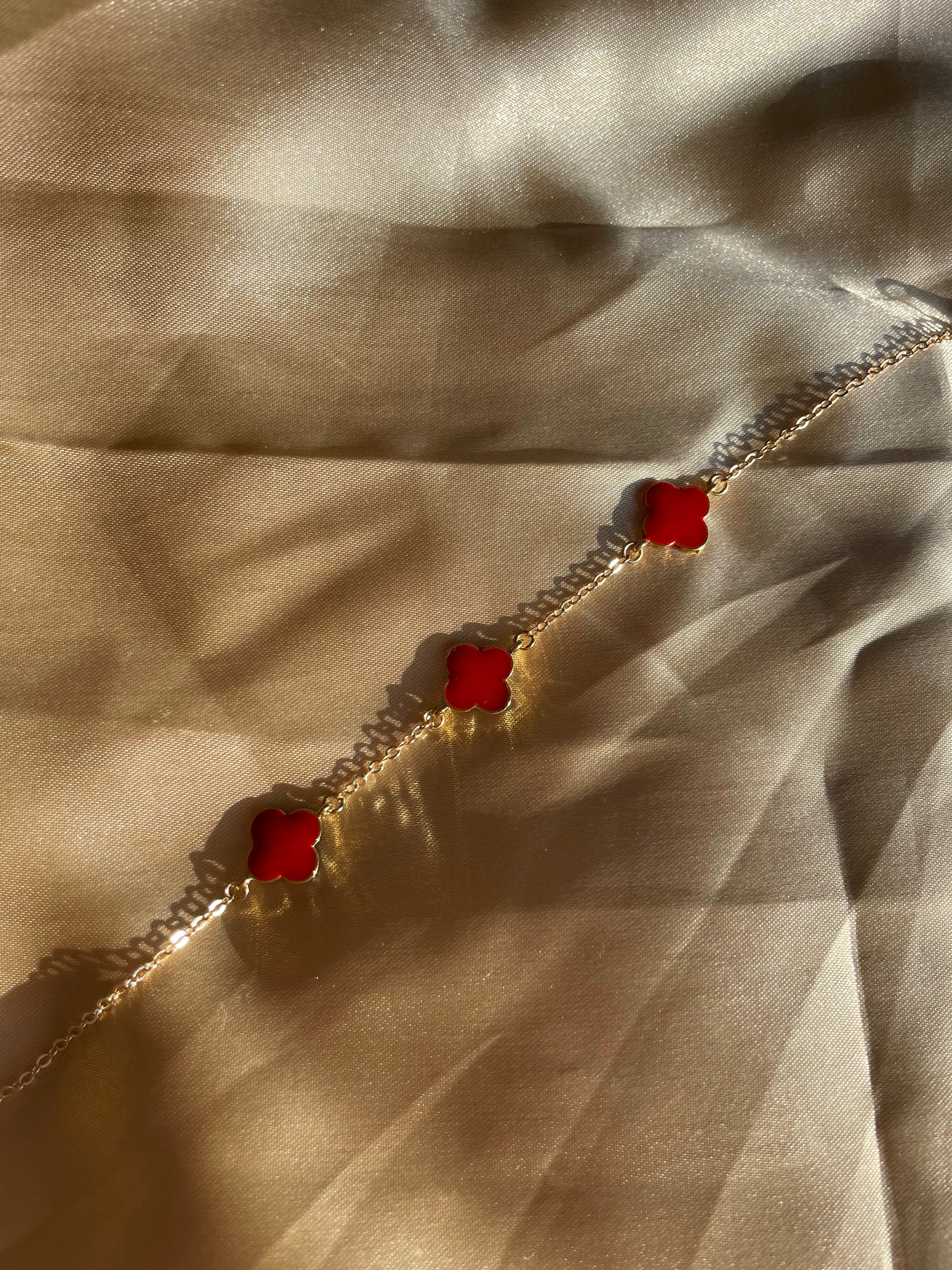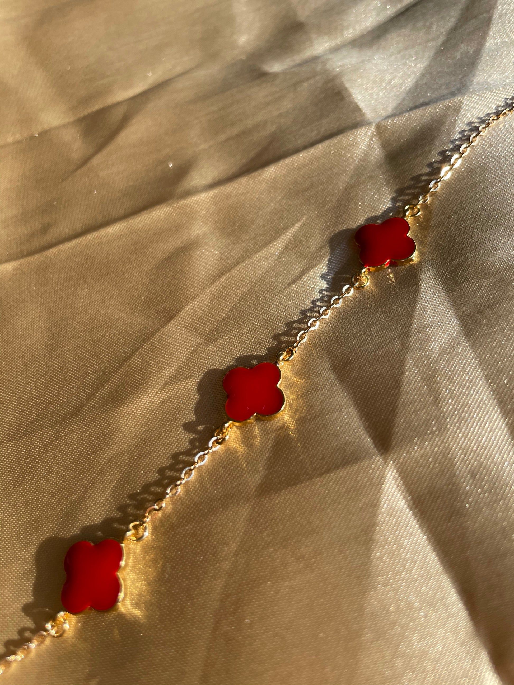 24kt Gold Plated Red Clover Bracelet
