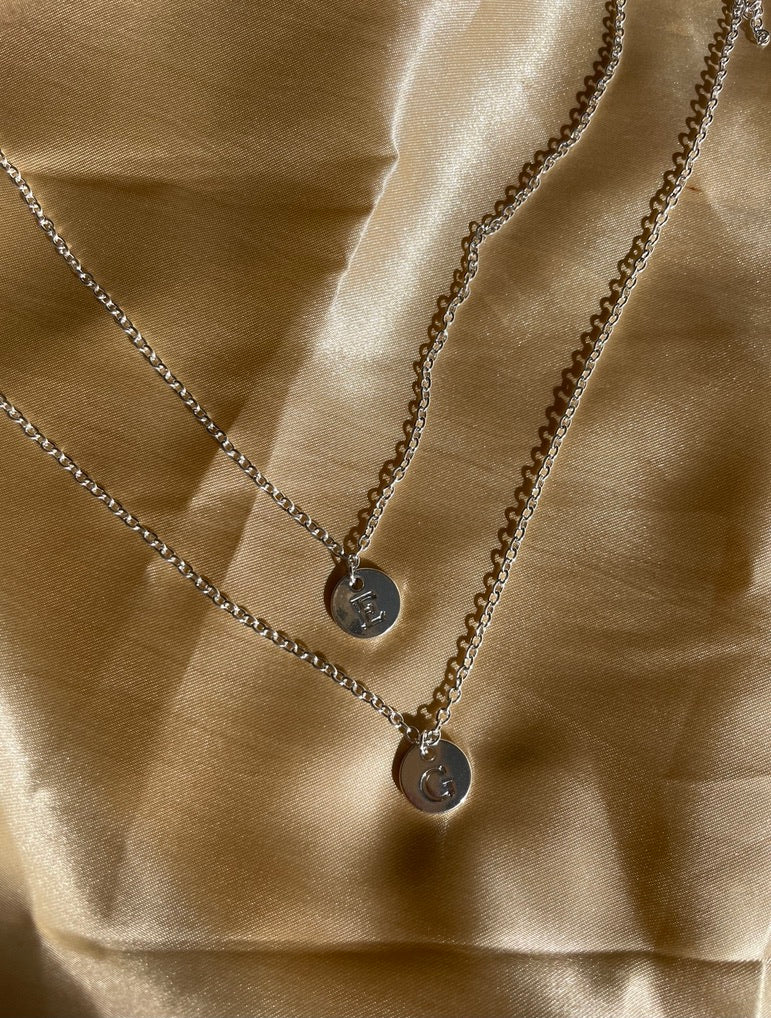 Silver plated letter pendant on a silver plated 16" chain with a 2" extender.