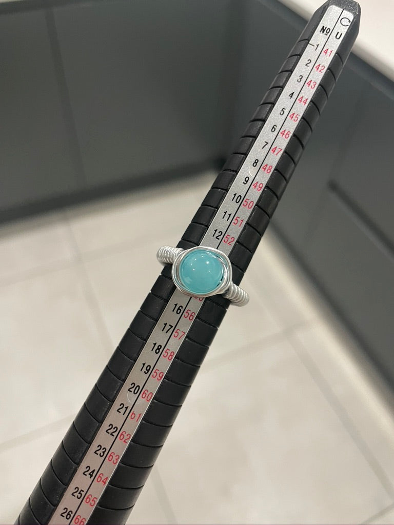 Birthstone bead wire wrap ring. A genuine stone bead with silver-plated aluminium wire wrapping around. Multiple sizes are available, there is a photo of a sizing chart to help ensure you order the correct size.